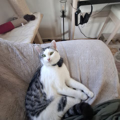 Luna ist sehr scheu, benötigt eine lange Eingewöhnungszeit, taut aber nach einigen Monaten bestimmt auf. Sie mag es nicht, angefasst zu werden, ist aber sehr neugierig und kommt meistens, wenn man ruft, vorallem mit Leckerlis. Auch Luna mag es zu spielen. Sie beschäftigt sich oft selber, aber wenn dann Pflegemama zwischendurch mit der Angel kommt, kommt ihre verspielte Seite auch im Beisein von Menschen hervor. Da Sissi die selbstbewustere ist, muss man sie meisten zurückhalten, damit auch Luna etwas von Pflegemamas Spielzeit geniessen darf.